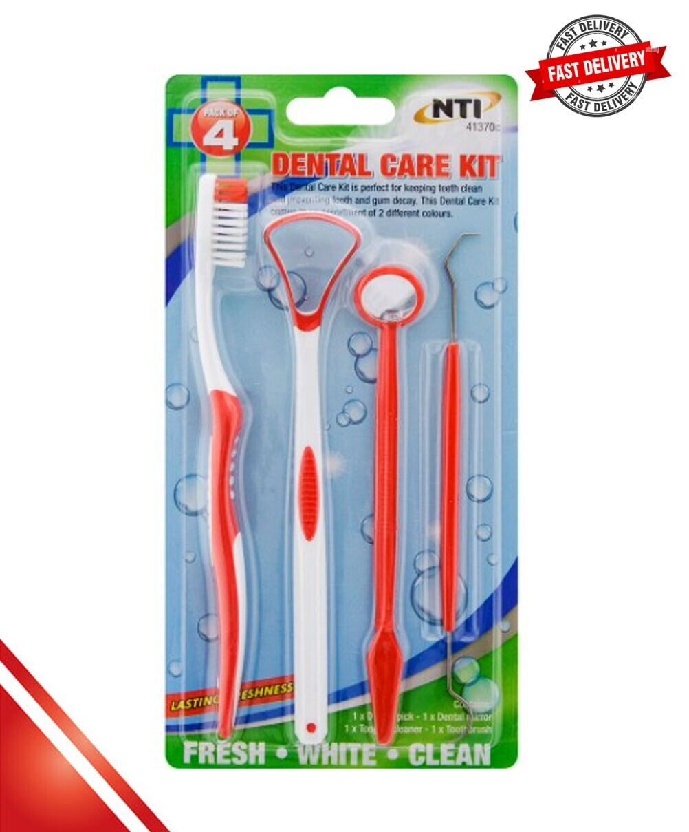 Dental Care Kit | Toothbrush Tongue Cleaner Tooth Pick Mirror | 4pc Dental Kit.