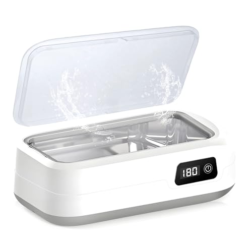 Ultrasonic Cleaner, 640ml Jewellery Glasses Cleaner 49kHz Ultrasonic Tooth Retainer Sonic Cleaner Machine, Silver Cleaner Jewelry Cleaning Kit for Jewellery Ring Glasses Watch Dental Pod Dentures