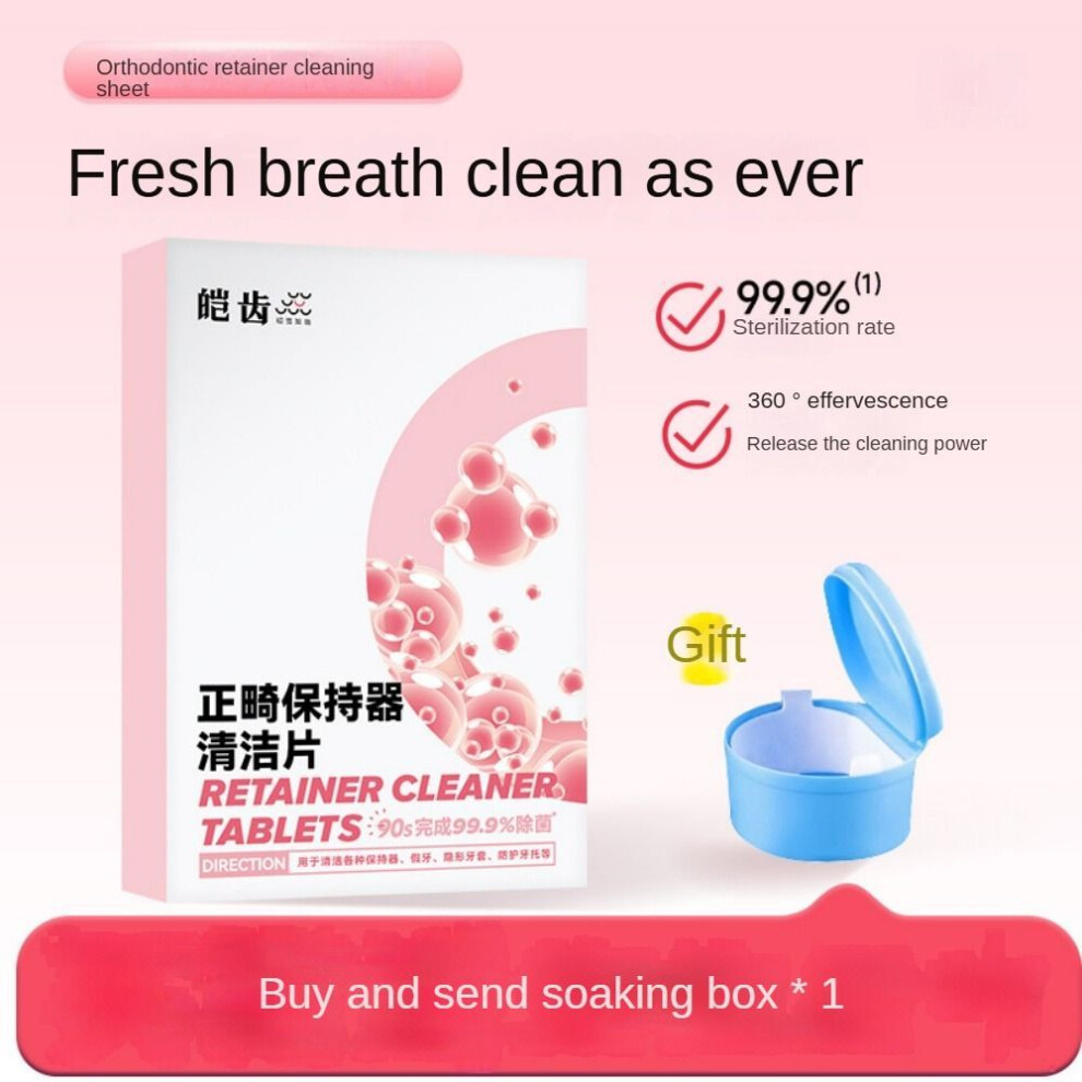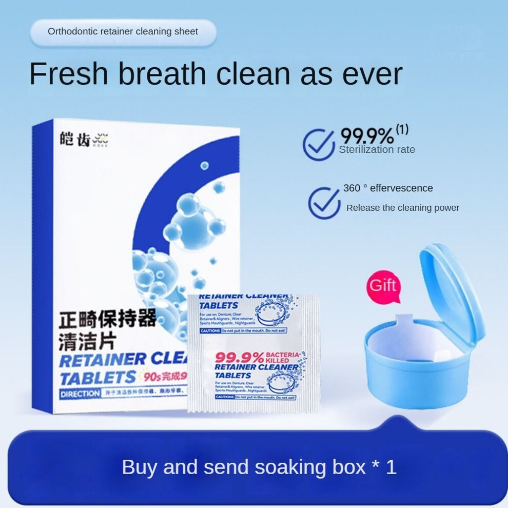 (#A 30PCS+Tooth Box) Denture Retainer Cleaning Tablets, Invisible Braces Cleaning Effervescent