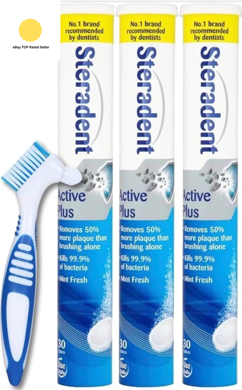 12 X Steradent Active Plus Denture Cleaning Tablets - Pack of 30 Free P&P