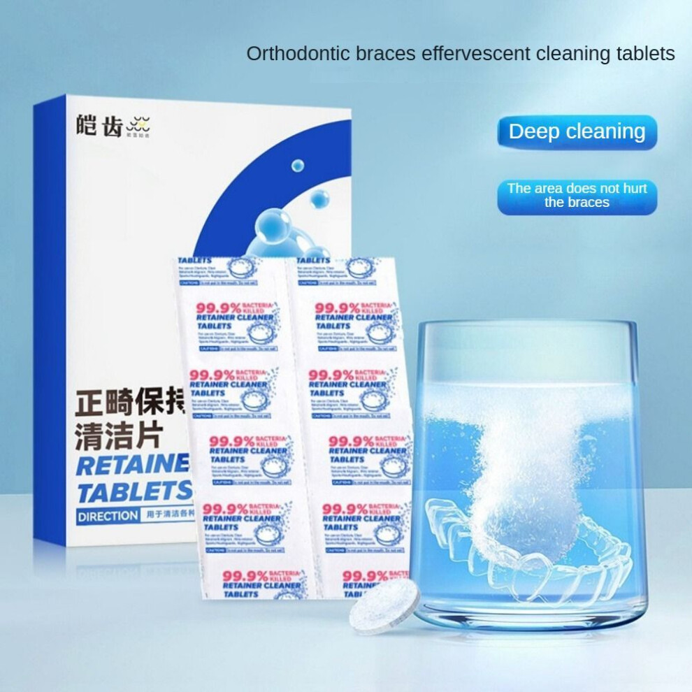 (#A 30PCS/Box) Denture Retainer Cleaning Tablets, Invisible Braces Cleaning Effervescent
