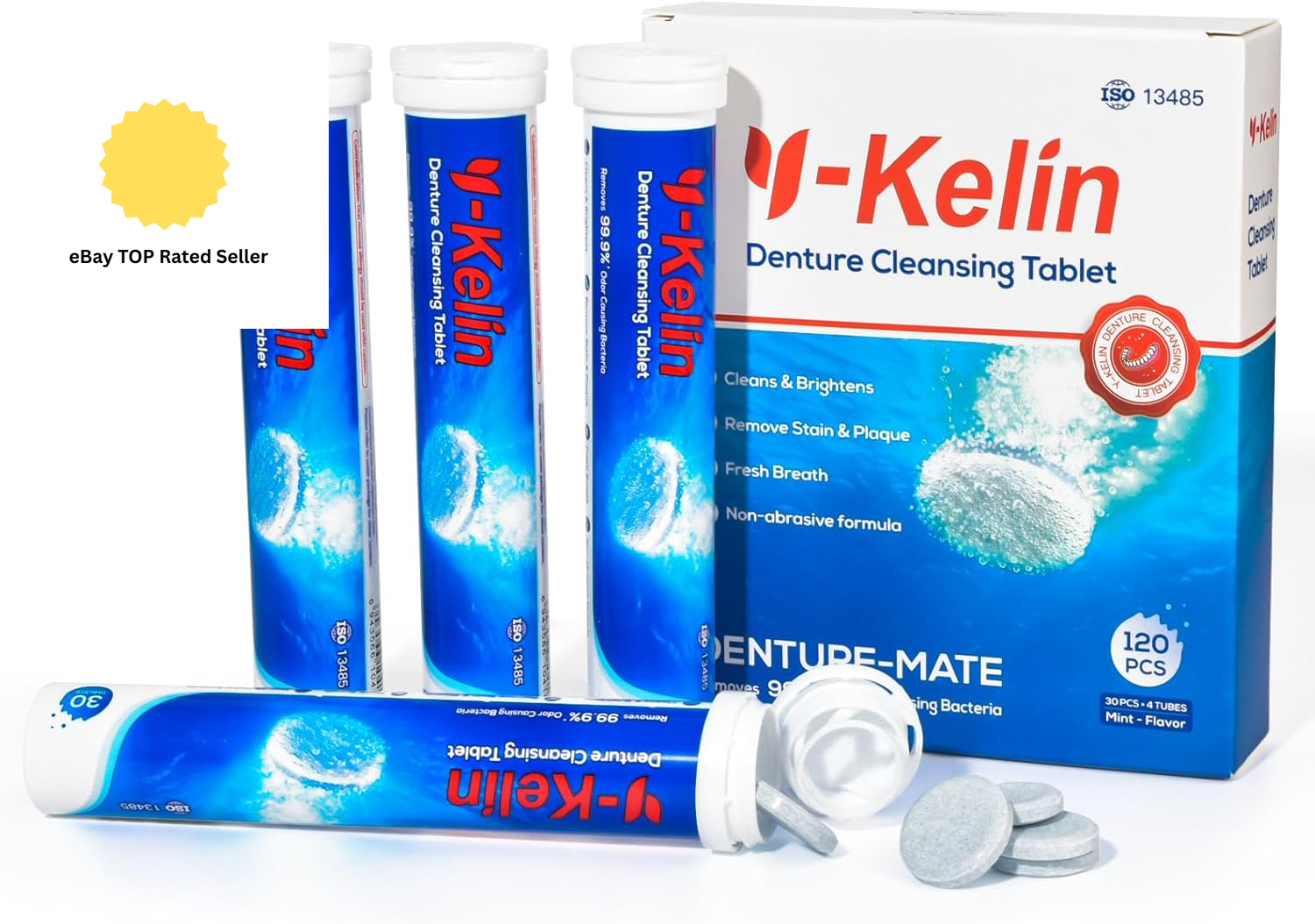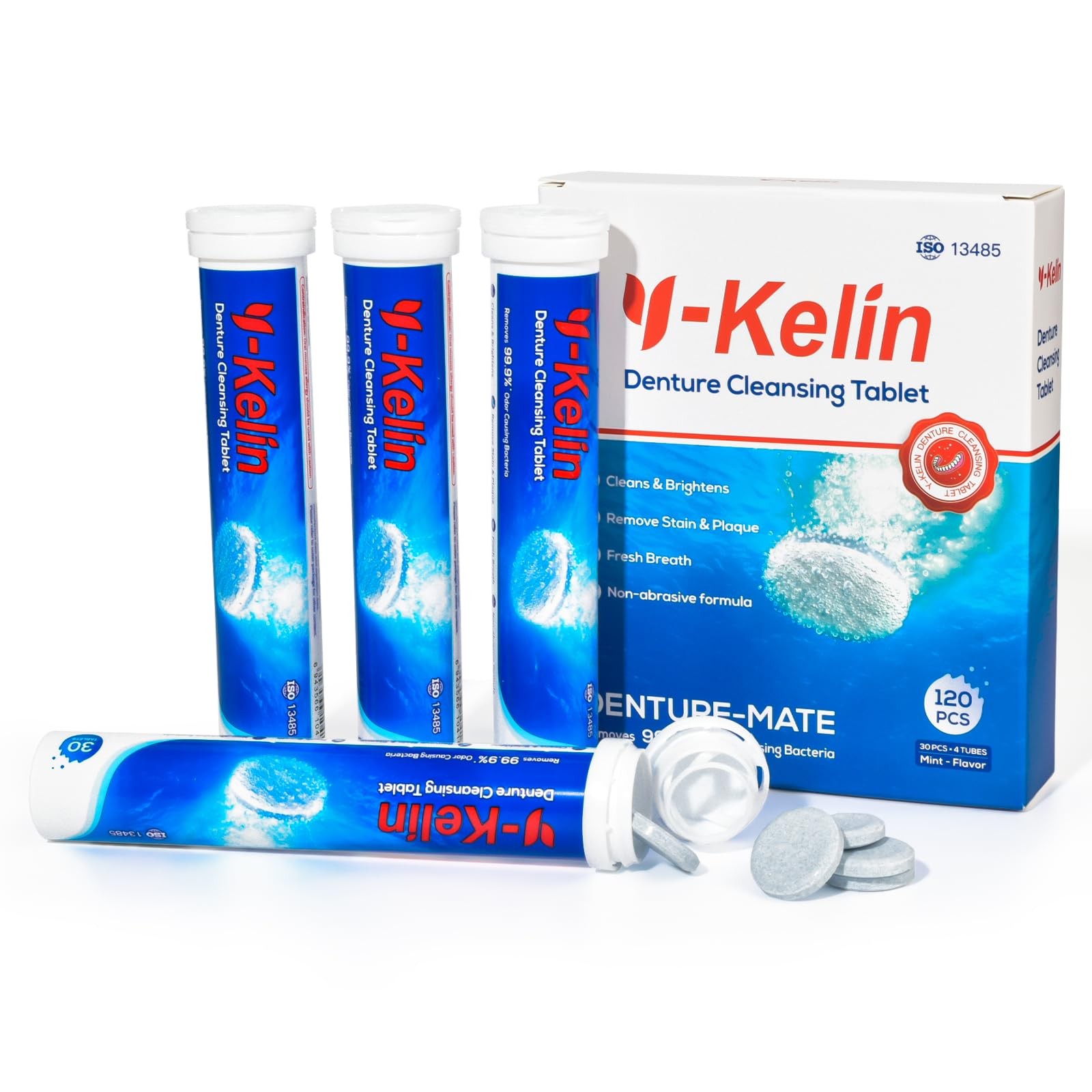 Y-Kelin 4 Pack Denture Cleaning Tablets - 120 Pcs, False Teeth Cleaner, Denture