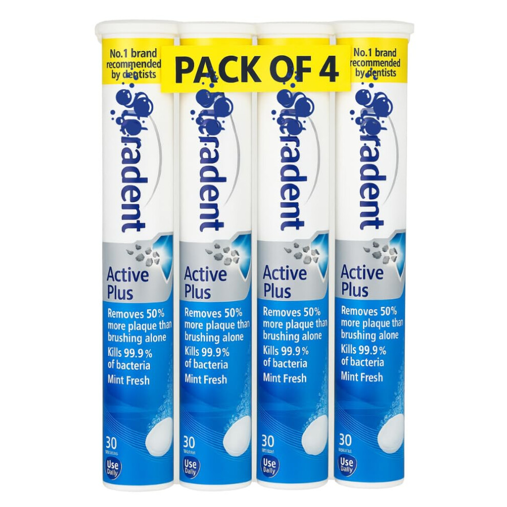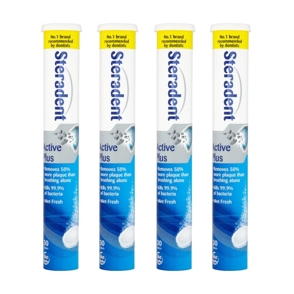 4 Pack Active Plus Denture Cleaning Tablets - 120 Tablets, False Teeth Cleaner, Retainer, Denture & Mouth Guard Sterilising Tablets, Multipack Bundle for Fresh Hygiene and Stain Removal