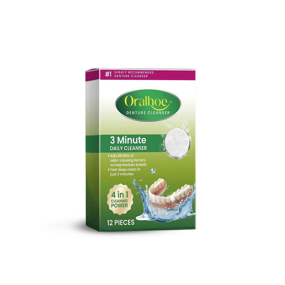 (12 PIECES) ORALHOE Denture Cleaning Effervescent Tablets Daily Cleaning Denture Dirt and Stains Care Effervescent Tablets