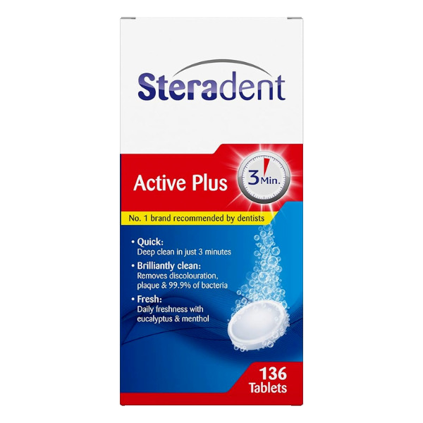 Steradent Active Plus Denture Cleaning - 136 Tablets - Recommended by Dentists