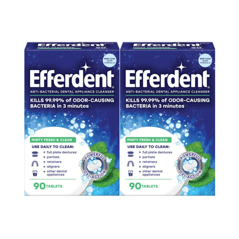 efferdent Retainer Cleaning Tablets Denture Cleaning Tablets for Dental Appliances Minty Fresh & Clean 90 Count New Packaging - PACKAGING MAY