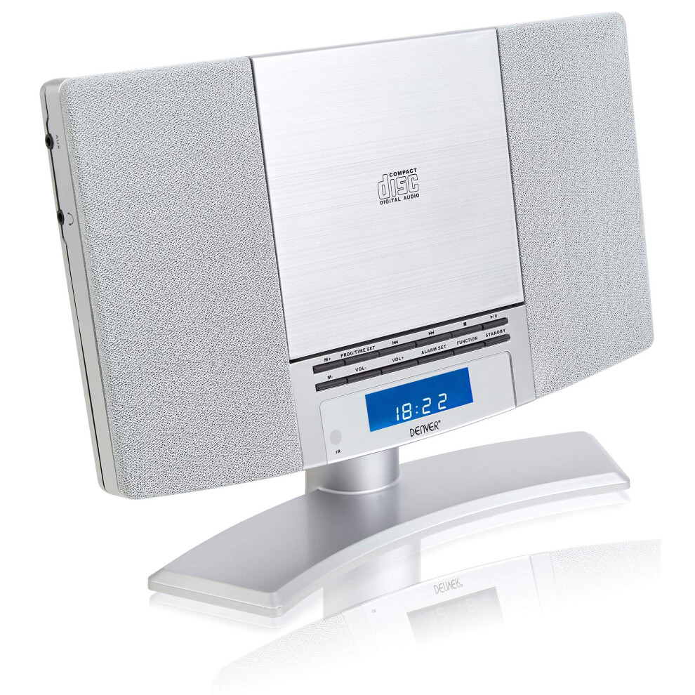 Denver CD Player For Home HiFi System - CD Player With Speakers & Radio - Mains Power, Vertical, Clock Radio, Remote Control, Wall Mounted CD Player