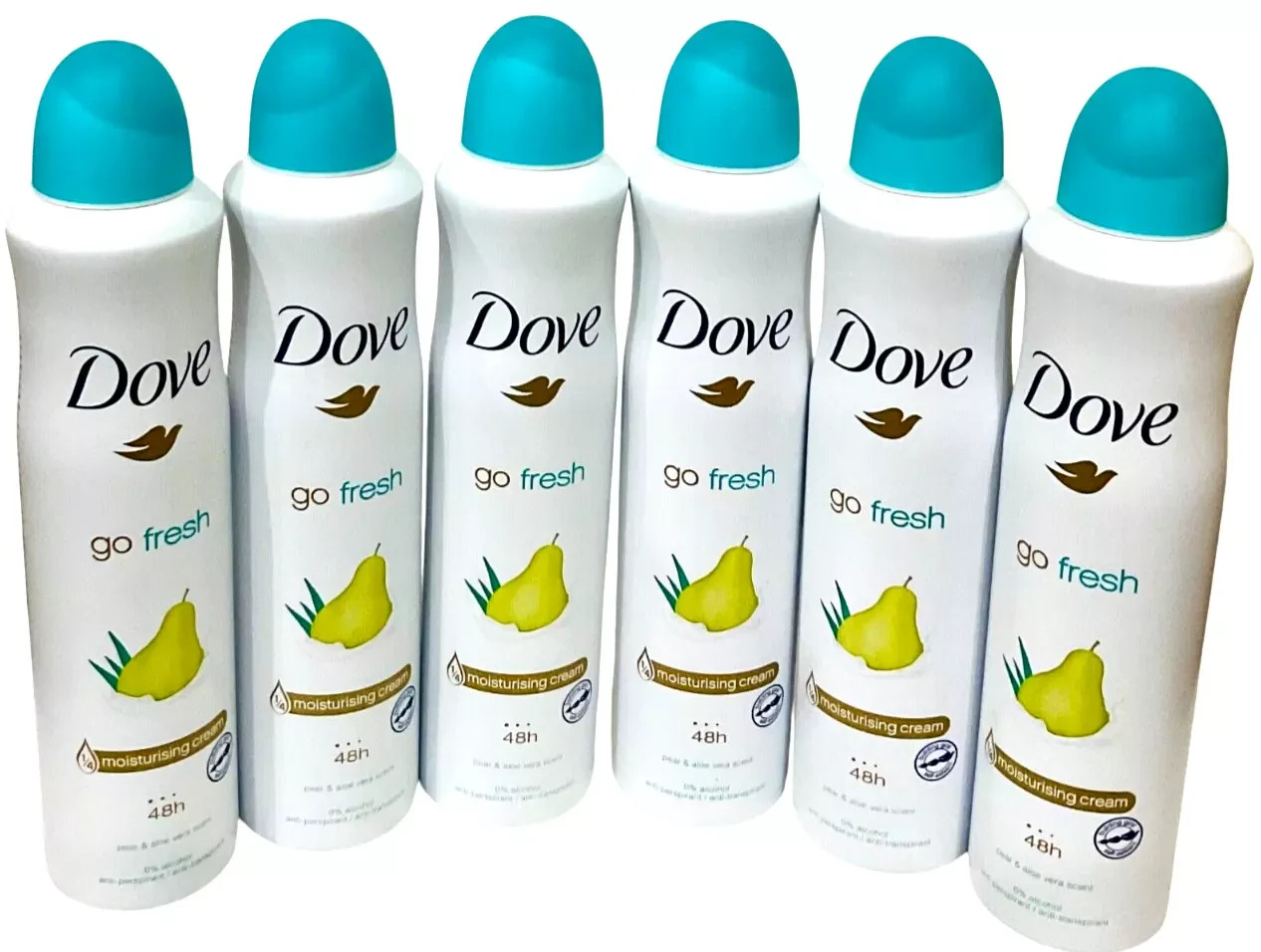 6 x 250ml Dove Deodorant Anti Perspirant - Go Fresh Pear and Aloe Vera - Female
