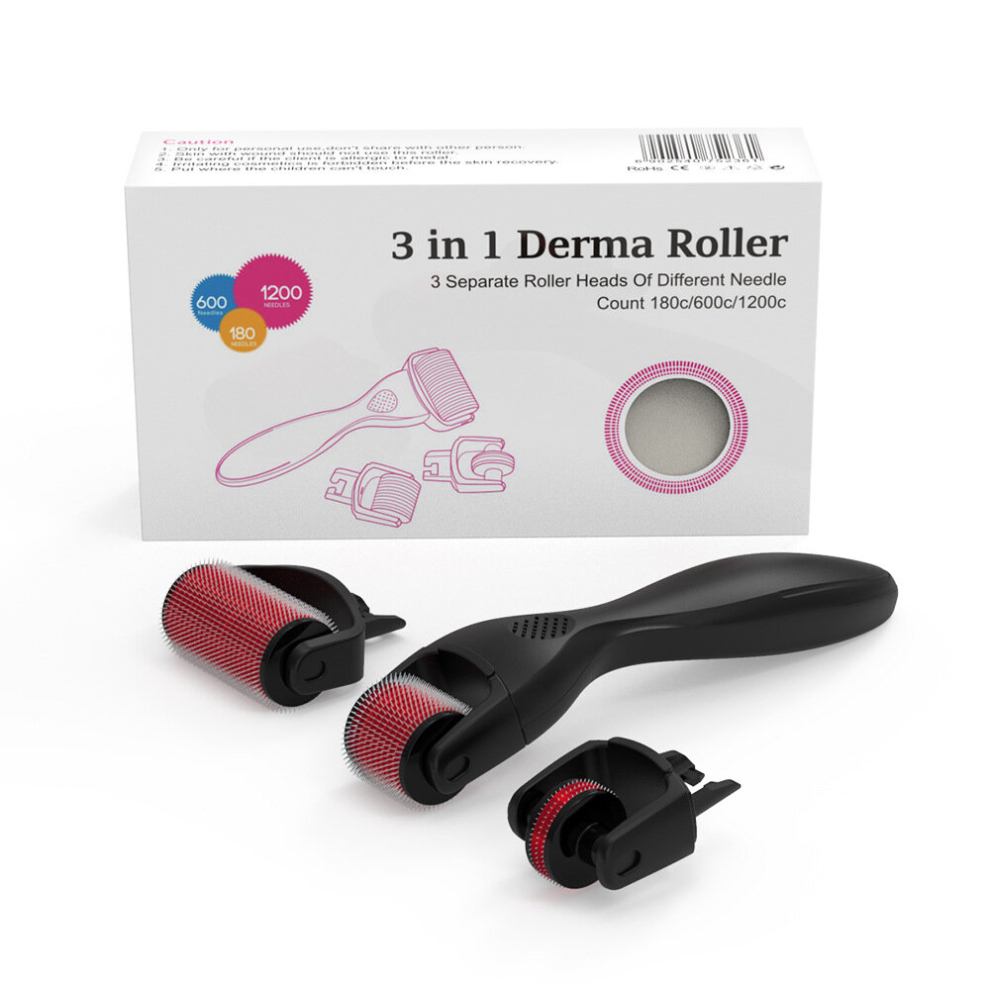 (Black Red) Derma Roller Microneedle Derma Roller DRS 3 In 1 Kit 180 600 1200 Titanium Needles Machine For Face Body Massage Skin Care 0.5mm 1.0mm 1.5