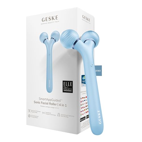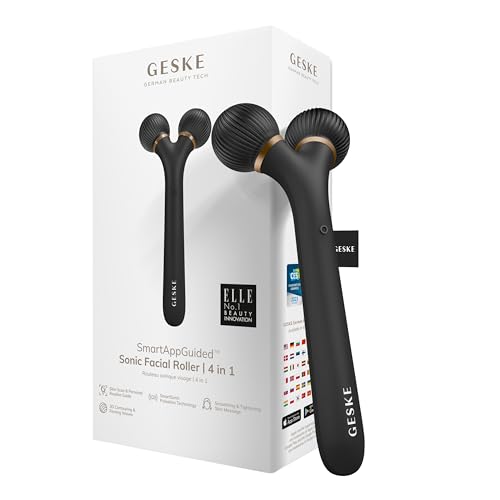 GESKE SmartAppGuided™ Sonic Facial Roller | 4 in 1 | Derma Roller | Facial dermasmooth stimulator | professional facial roller | for skincare and beauty routine