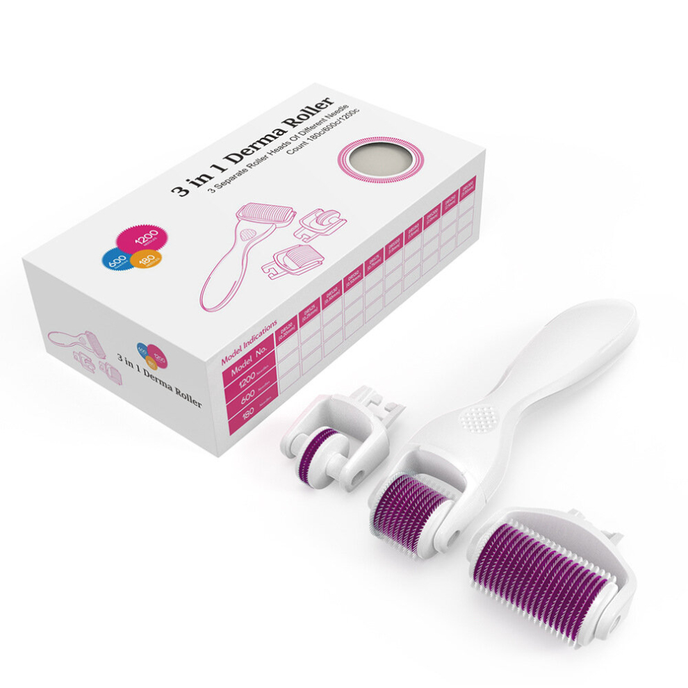 (White Purple) Derma Roller Microneedle Derma Roller DRS 3 In 1 Kit 180 600 1200 Titanium Needles Machine For Face Body Massage Skin Care 0.5mm 1.0mm