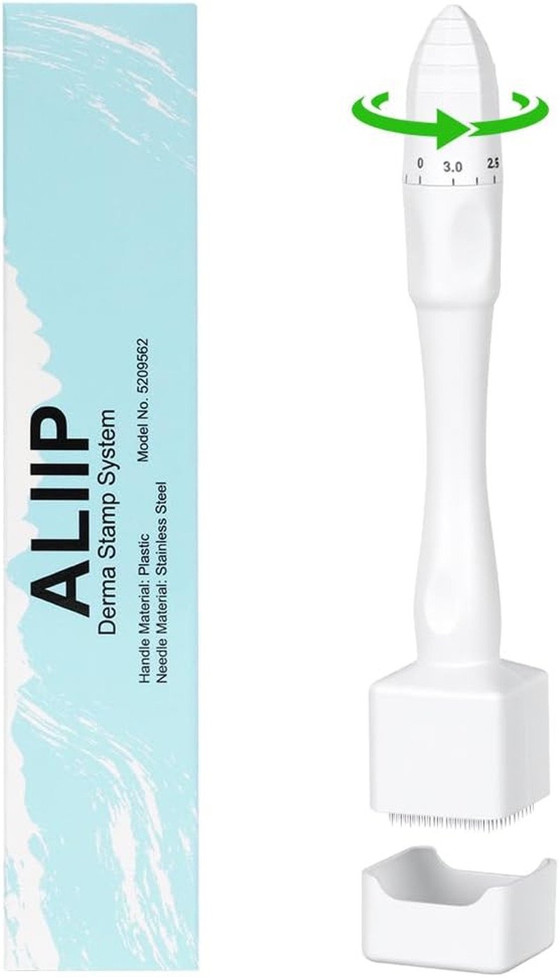 Derma Stamp Adjustable, Dermastamp for Hair and Beard Growth, 0-3mm Titanium Microneedling Stamp for Face Scalp, Alternative for Derma Roller Microneedling Pen