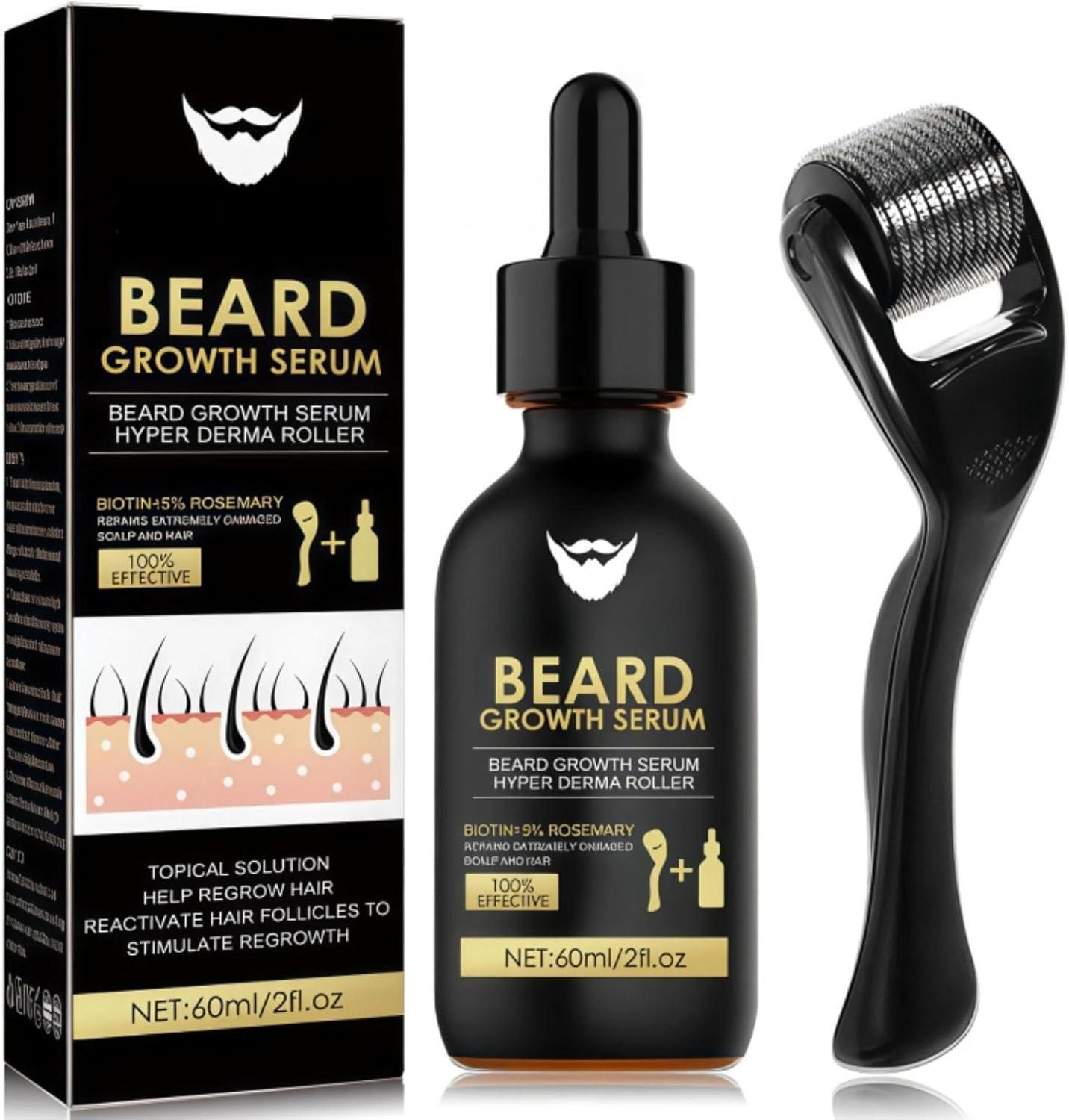 Beard Growth Kit with Derma Roller & Natural Ingredients Serum - Rapid Growth &