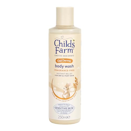 Childs Farm OatDerma Body Wash, Fragrance Free, Soothing Face Bath Shower Gel, Sensitive Skin Soap, Baby Kids, 250ml