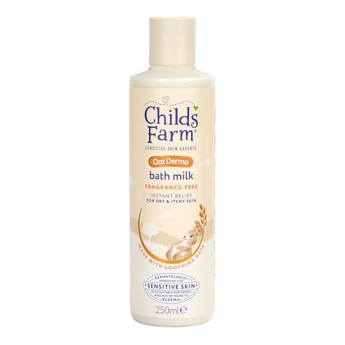 Childs Farm OatDerma Bath Milk, Fragrance Free, Soothing Hydration for Sensitive Skin, Emollient, Baby, Kids, 250ml