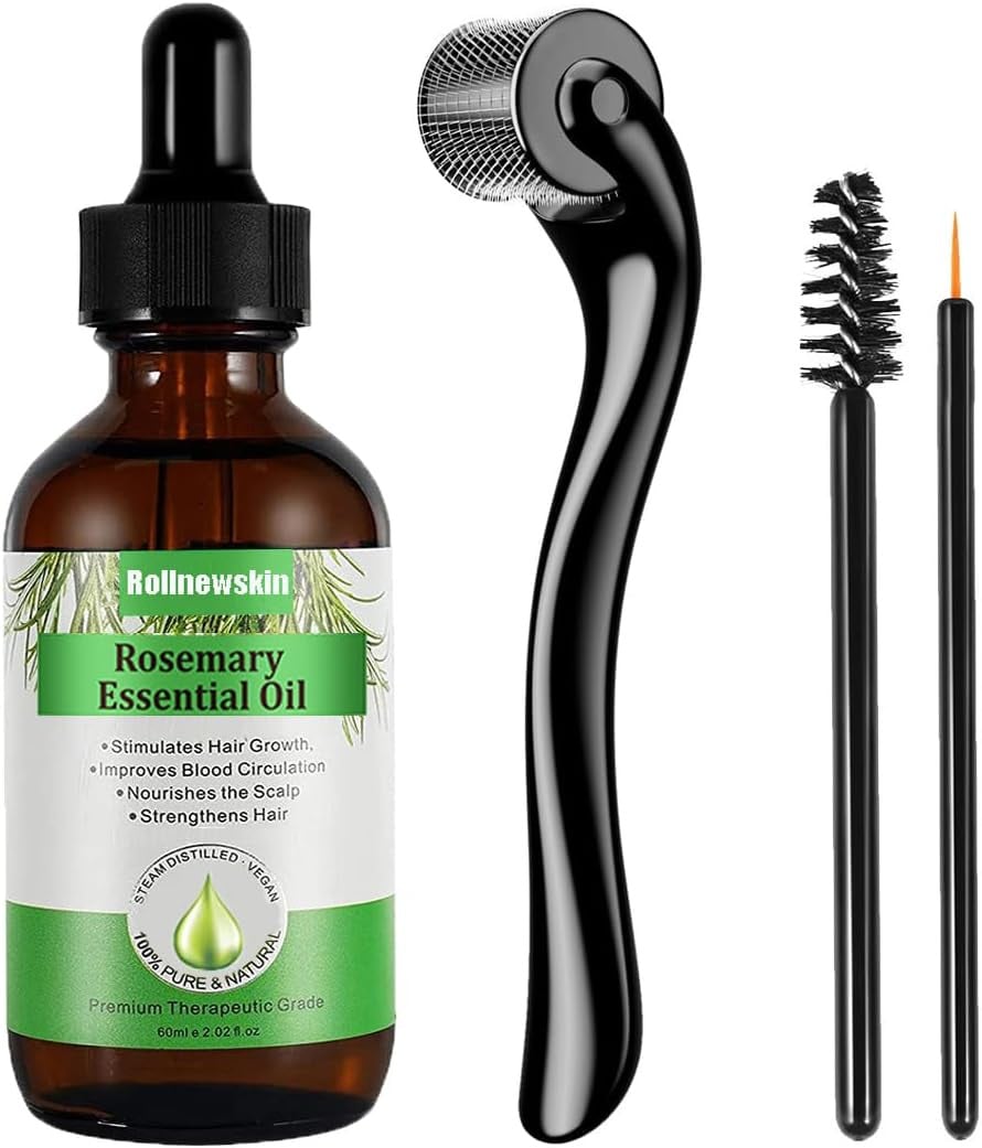 Rosemary Oil (60ML)+ Derma Roller 0.5mm for Hair Growth, Skin Care, Eyebrow and