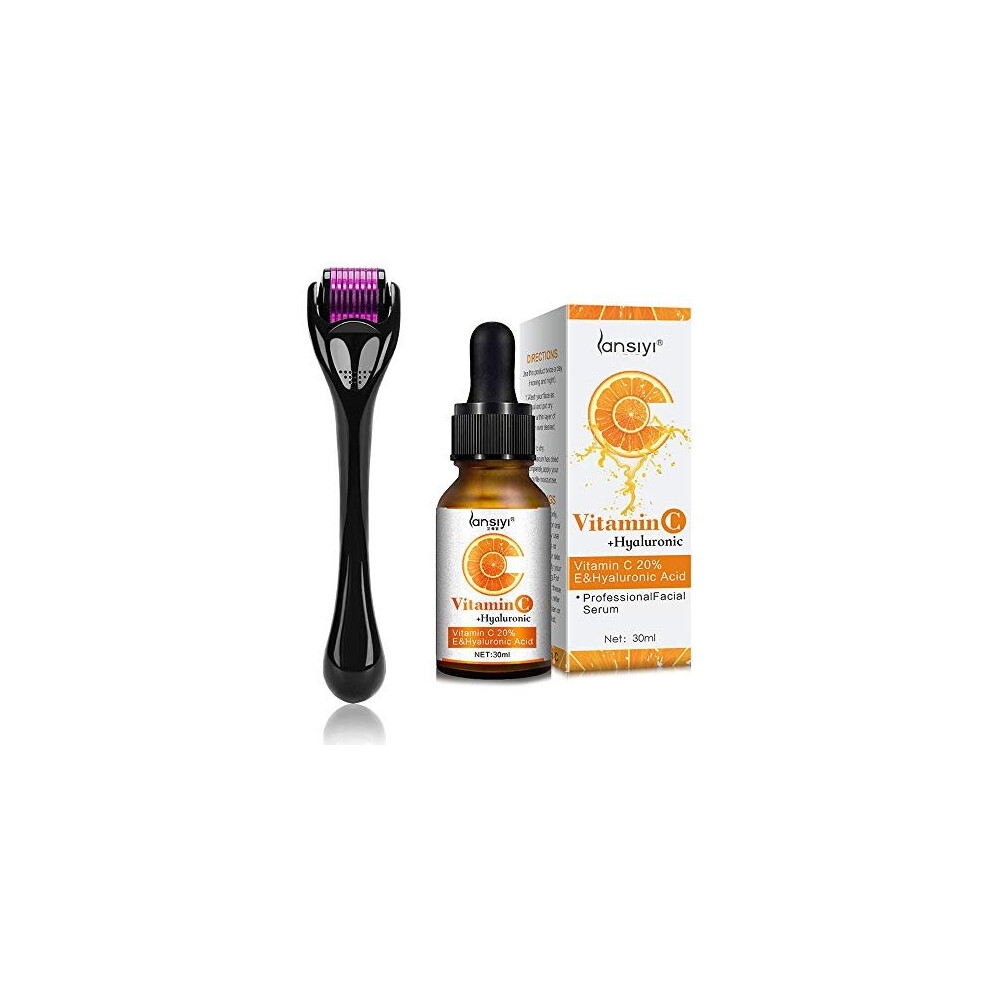Derma Roller Microneedling Kit for Face 0.3mm and Vitamin C Serum with Hyaluronic Acid Facial Serum - 540 Titanium Microneedle Organic Vitamin C 20%