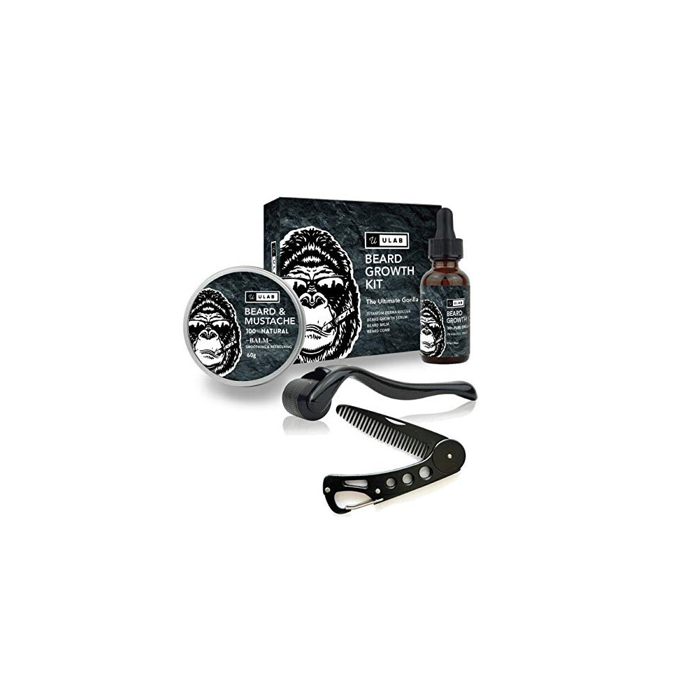 uLab Ultimate Gorilla Beard Growth Kit with Derma Roller, Beard Oil, Beard Balm and Foldable Styling Comb - Gift Set for Men For Beard Growth, St