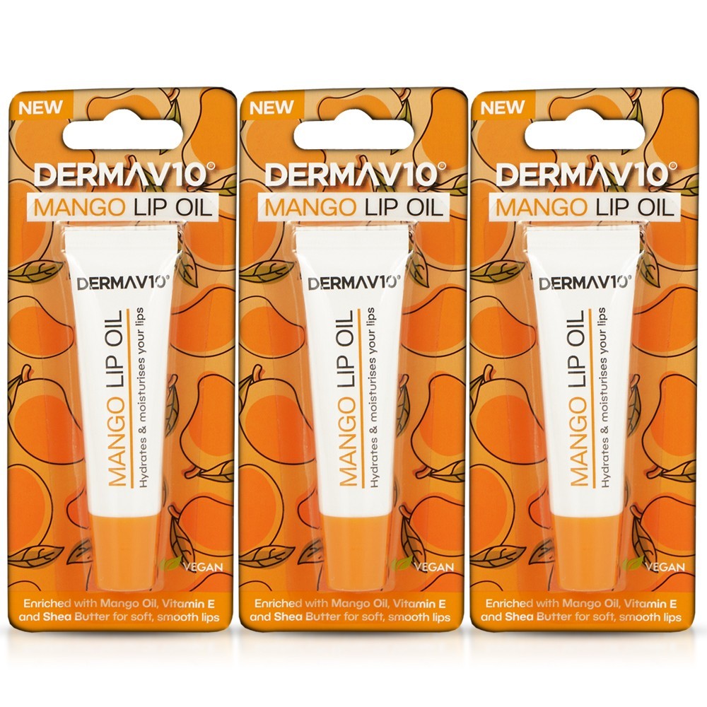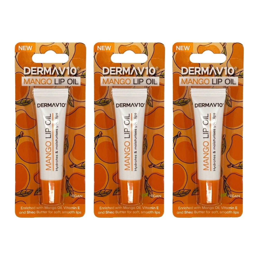 3x DermaV10 Mango Lip Oil - Hydrates | Vitamin E | Shea Butter | Vegan- 10ml