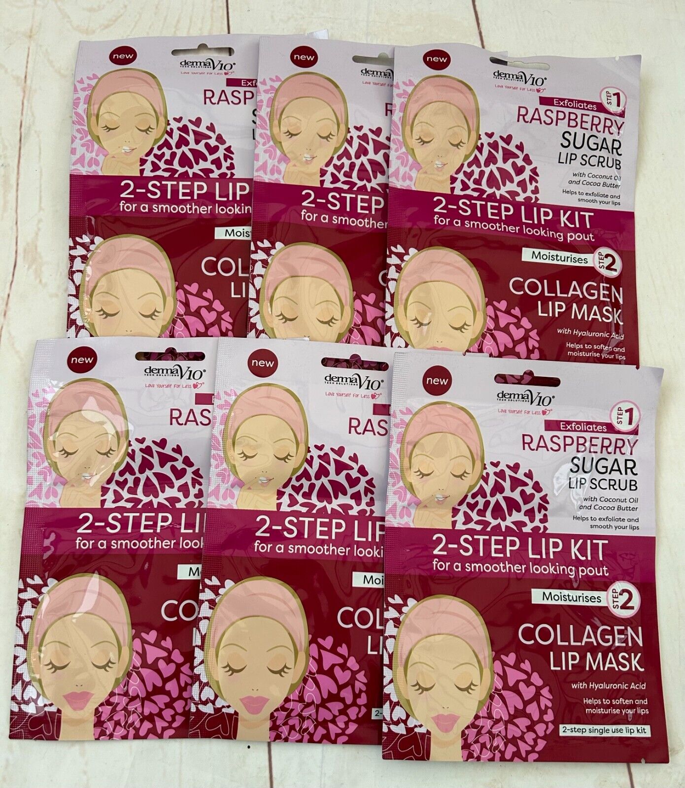 Derma V10 2- Step Exfoliating Raspberry Sugar Lip Scrub and Lip Mask x 6