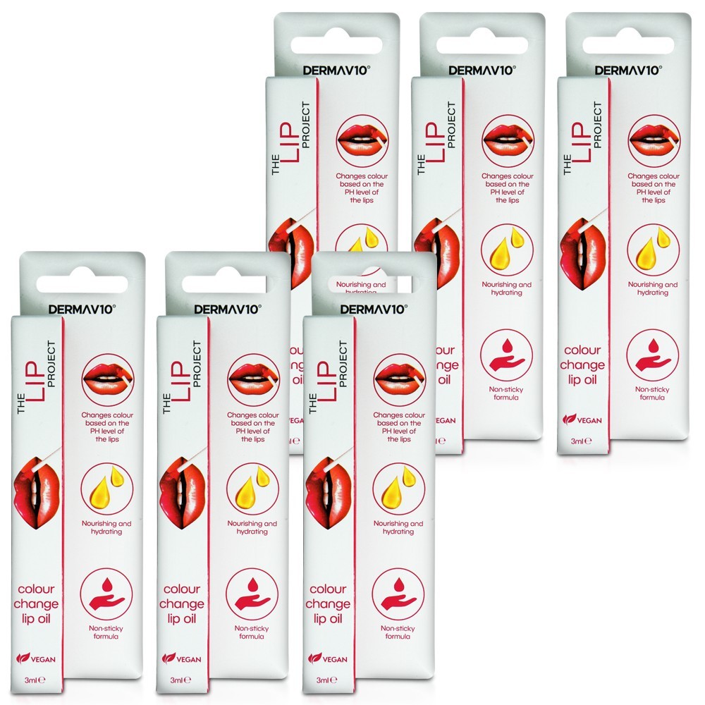 6x DermaV10 Nourishing Colour Changing PH Lip Oil 3ml