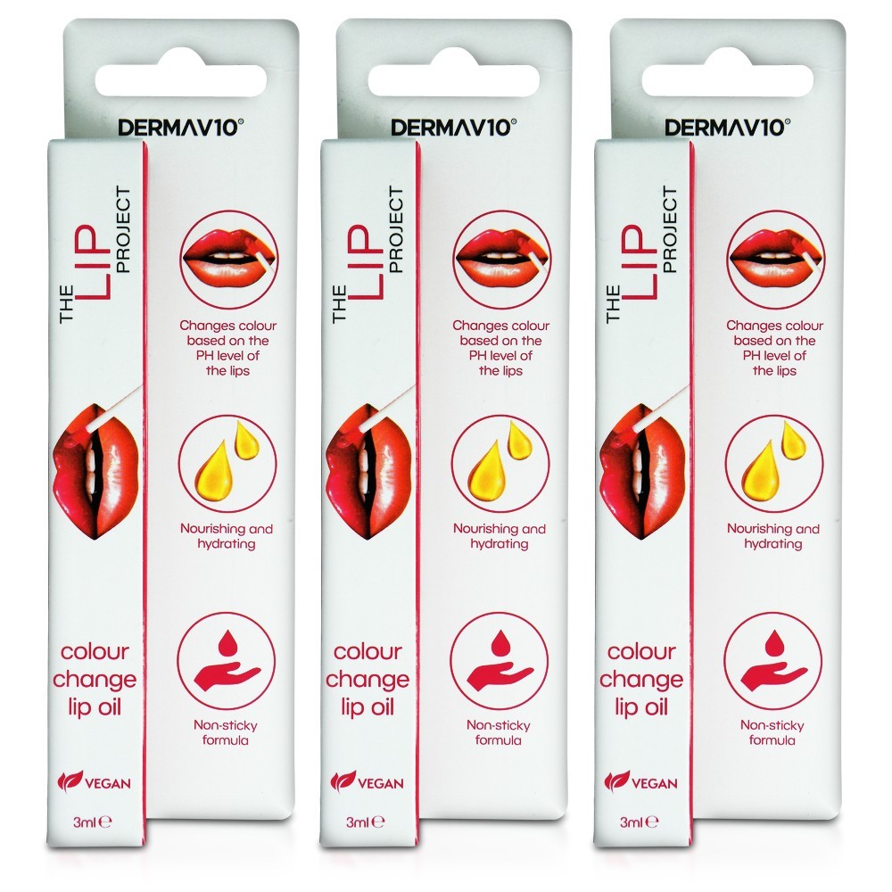 3x DermaV10 Nourishing Colour Changing PH Lip Oil 3ml