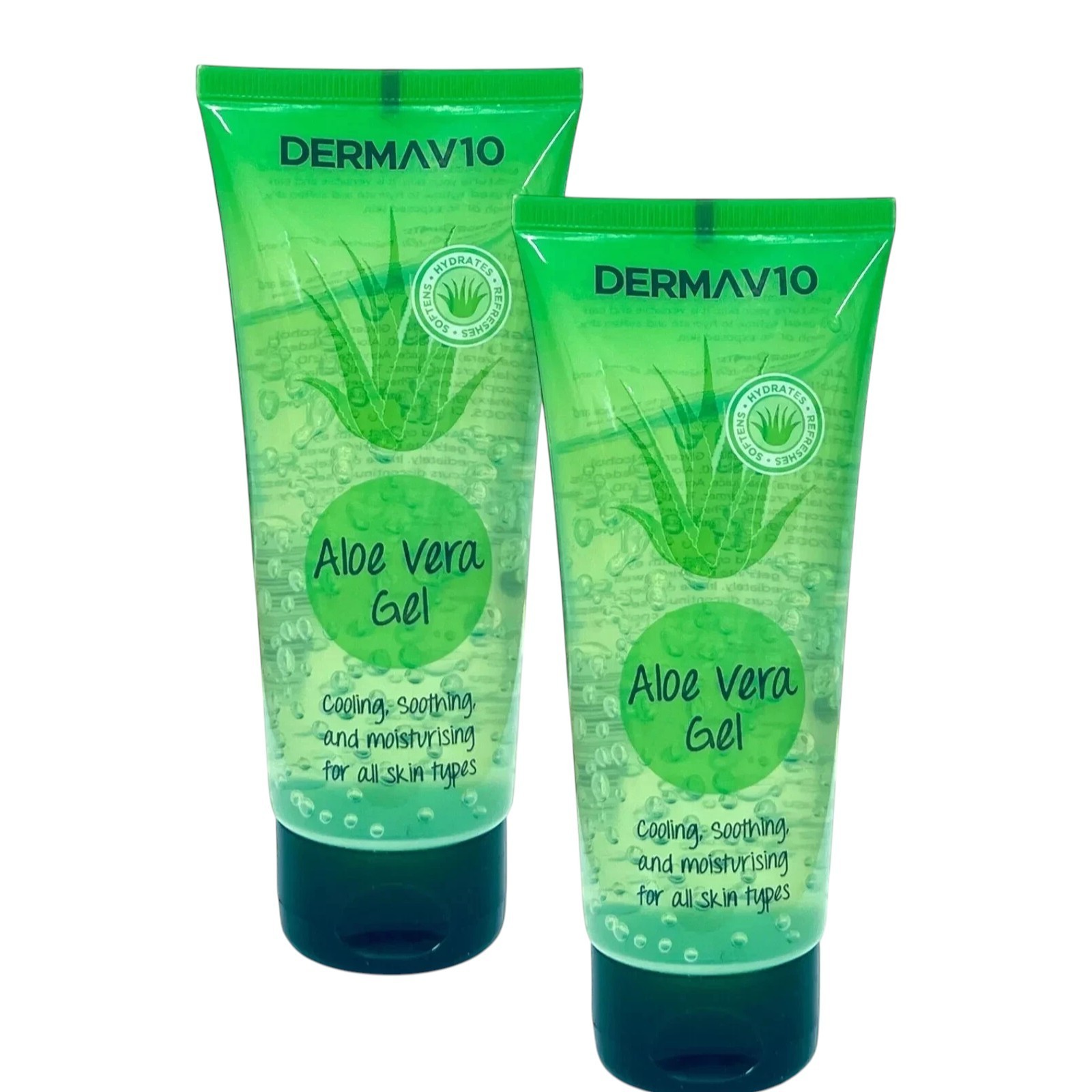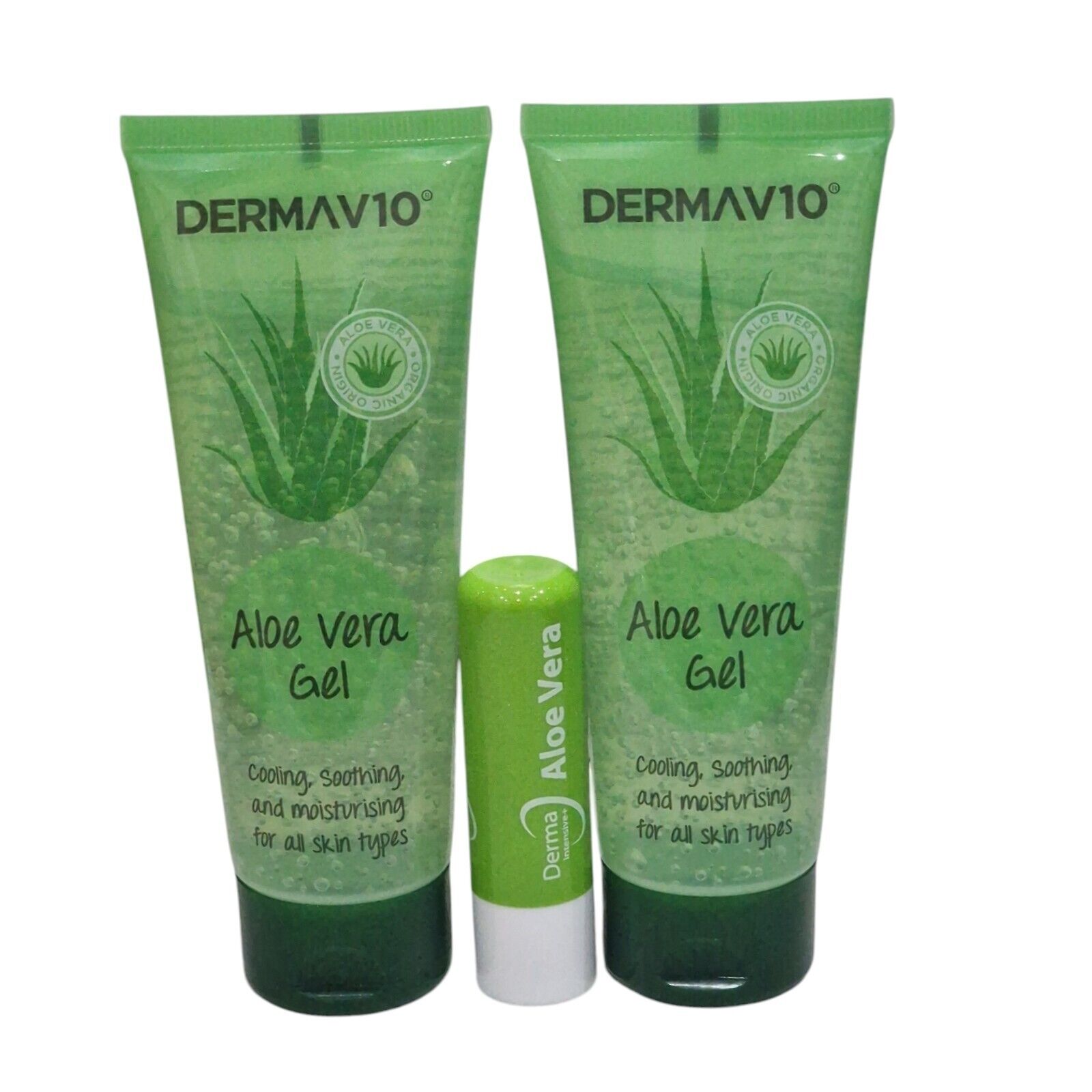 Derma V10 Aloe Vera Gel Non Sticky Cooling Soothing 2x 75ml With Lip Balm