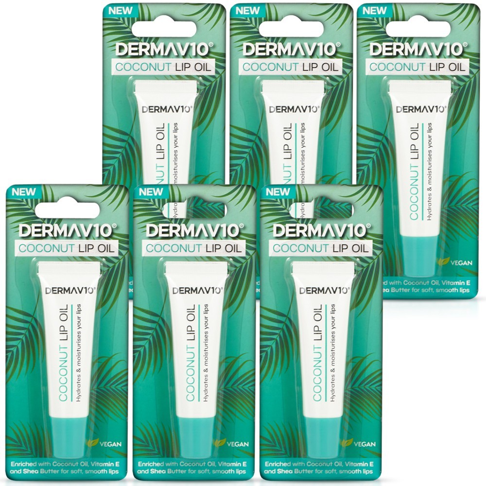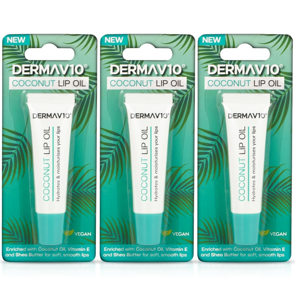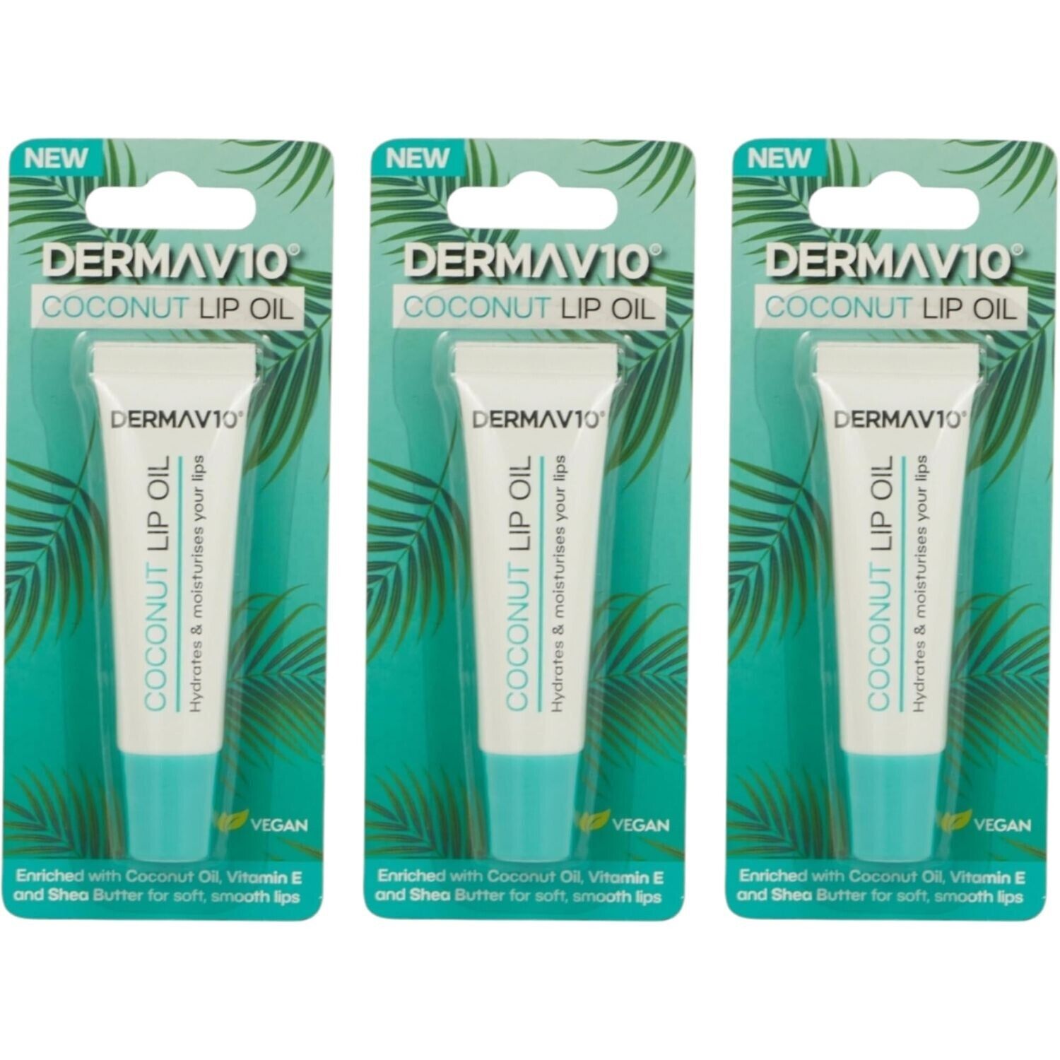 3x DermaV10 Coconut Lip Oil - Hydrates | Vitamin E | Shea Butter | Vegan- 10ml