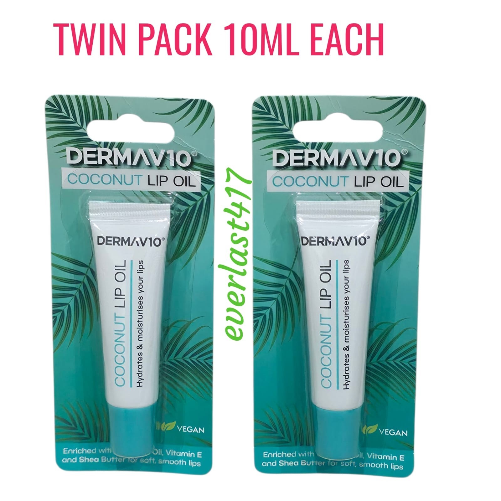 Derma V10 Coconut Lip Oil Hydrates Vitamin E Shea Butter Twin Pack 10ml