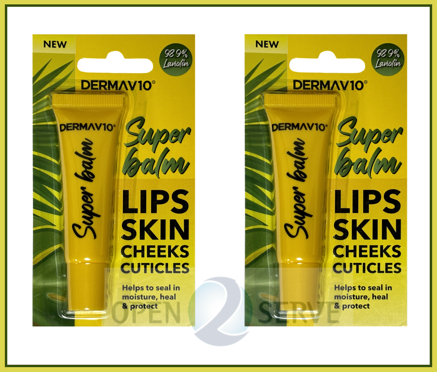 2x DERMA V10 Super Balm Lanolin Moisture - Lips | Skin | Cheeks | Cuticles-12.5g