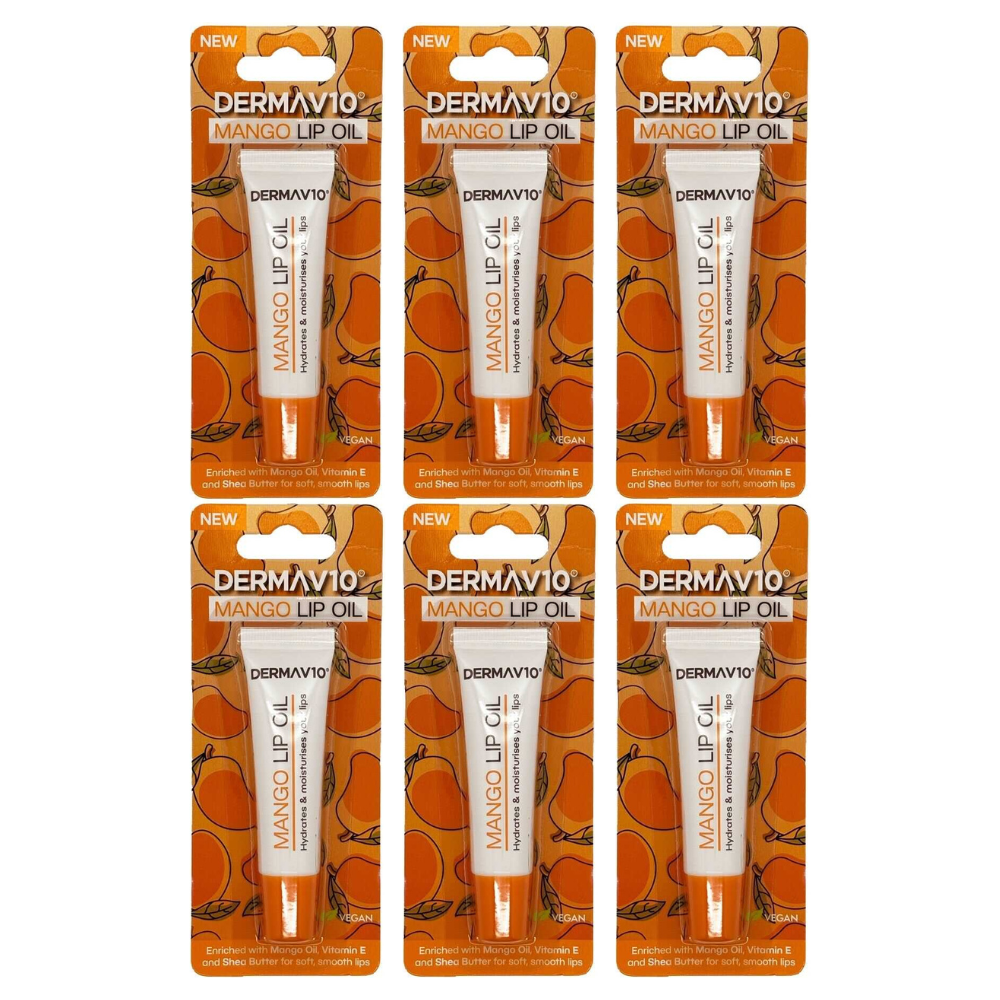 6x DermaV10 Mango Lip Oil - Hydrates | Vitamin E | Shea Butter | Vegan- 10ml