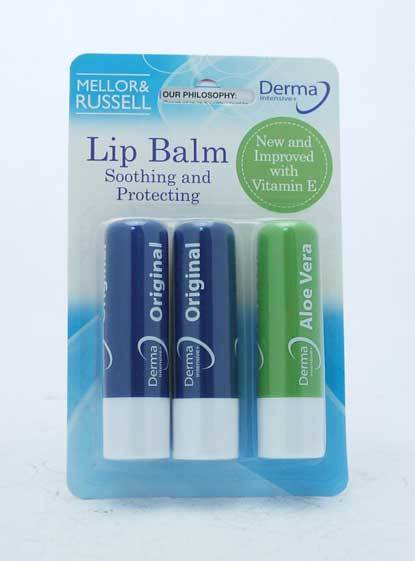 Derma Intensive Lip Balm 3 Pack Original Aloe Vera x12