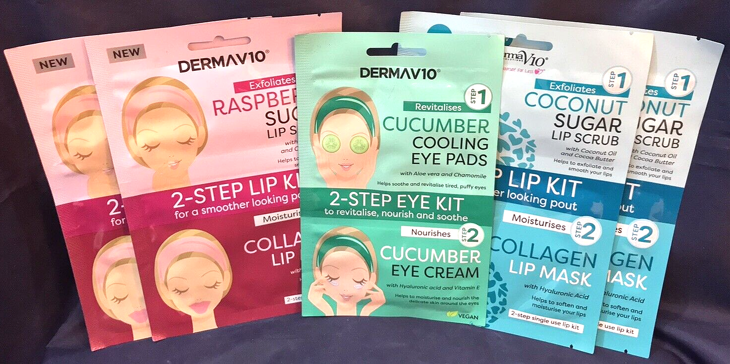 5 x DERMA V10 VEGAN Nourishing & Revitalising Face Eye Lip Cream, Scrub & Pads