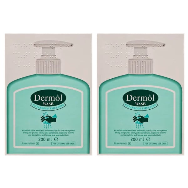 2x Dermol Wash Cutaneous Emulsion - 200ml Antimicrobial Emollient and Wash UK