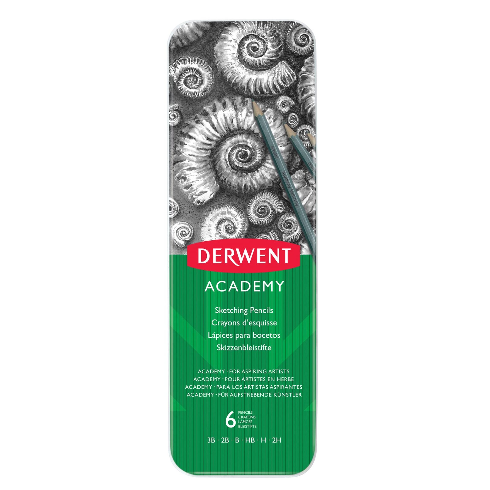 Derwent Academy Sketching Pencils Tin, 3B-2H - Set of 6