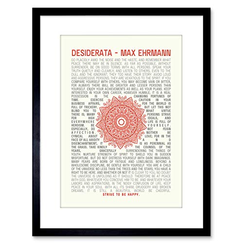 Quote Desiderata Mandala Ehrmann Typography Artwork Framed Wall Art Print 9X7 Inch