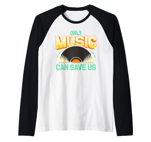 Only Music Can Save Us Vintage Vinyl Record Design 70s Vibes Raglan Baseball Tee