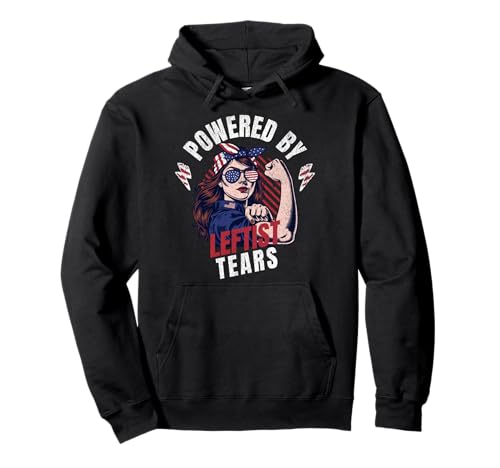 Powered By Leftist Tears US Flag Funny Republican Girl USA Pullover Hoodie