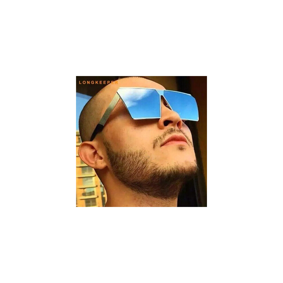 (Silver Blue) New Sunglasses Women Men Oversized Square Glasses UV400 Gradient Vintage Brand Designer Eyeglasses Frames Rimless LongKeeper