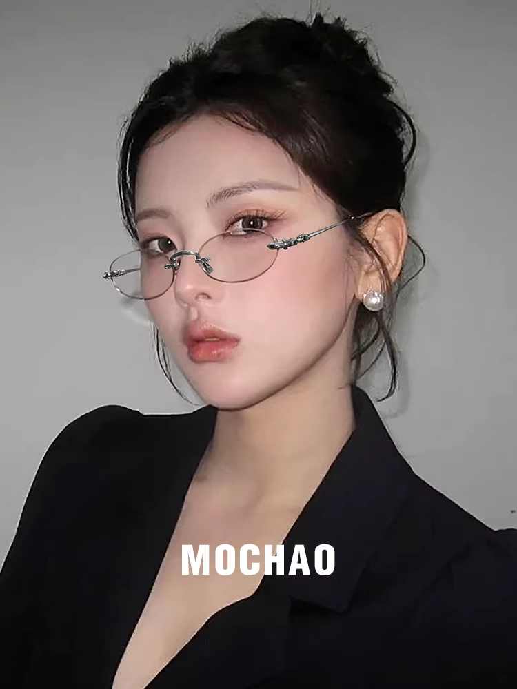 Designer Pure Titanium Oval Frames Ultra Light Frameless Optical Blue Light Prescription Glasses Myopia Hyperopia For Women