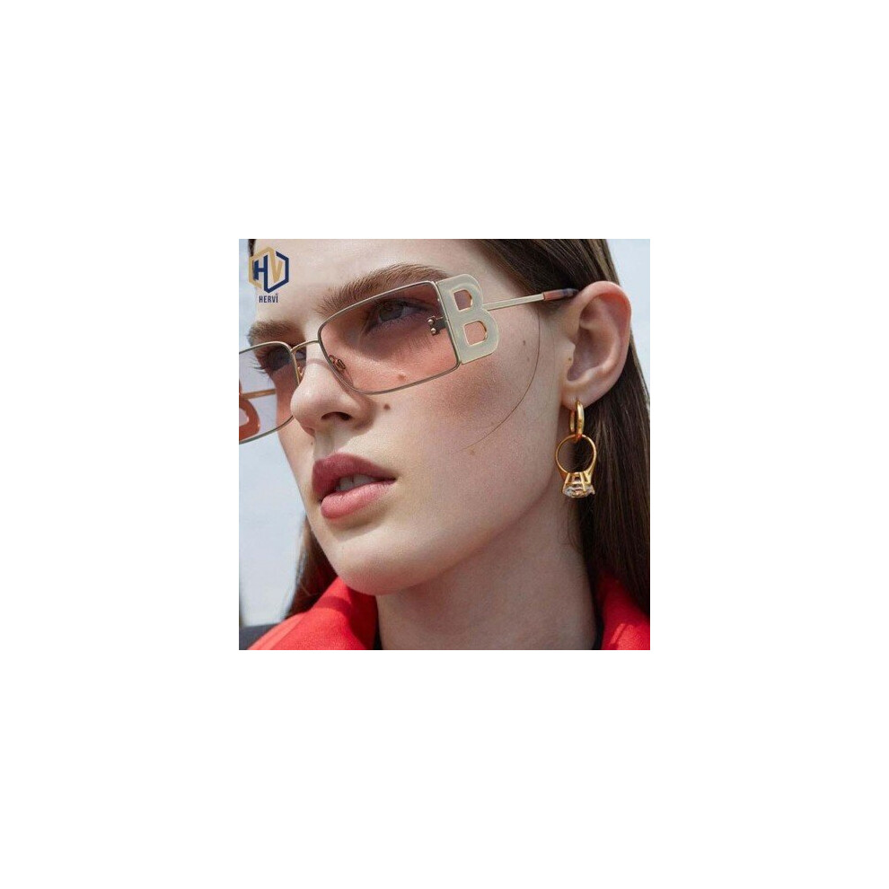 (B) New Fashion Rectangle Sunglasses Women Men Brand Designer Red Black Clear Lens Metal Frames Sun Glasses Trend Gift