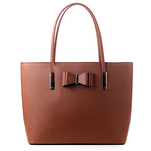 WEDMAY Large Handbags for Women, Brown Tote Bags for Women with Zip, School Handbag for Girls, Women's Laptop Tote Bag, Ladies Fashion Simple Shoulder Shopper Designer Bags(Brown)