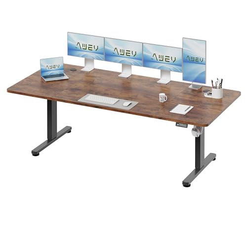 AWEV Electric Standing Desk 180 x 80 cm, Height Adjustable Sit Stand Desk with Backpack Hook & Memory Smart Pannel, Home Office Desk with Splice Board, Brown