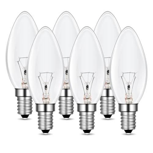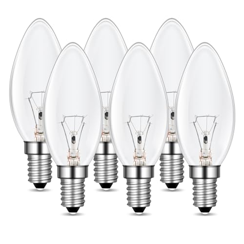 6 Pack E14 Small Screw Candle Light Bulbs, Dimmable SES E14 Light Bulb, Warm White 2700K, AC 220-240V, 400 Lumen, Clear C35 Candle Bulbs, for Ceiling Chandelier, Desk Lamp