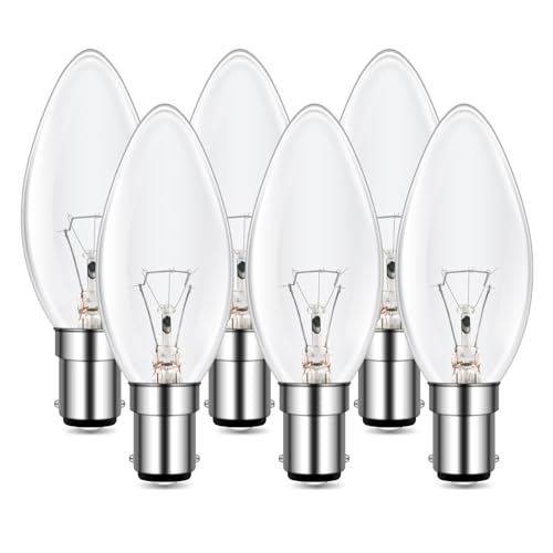Caldarax SBC B15 Small Bayonet Clear Candle Bulbs, C35 Candle Light Bulb, Dimmable Warm White 2700K, 400 Lumen, AC 230V, Small Bayonet Light Bulb, for Chandeliers, Desk Lamp, Ceiling Fixture, 6 Pack