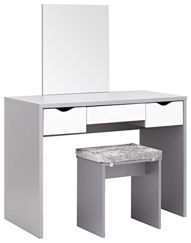 GFW Elizabeth Dressing Table Set Grey. Make Up & Hair Vanity Table With Drawers, Large Mirror & Plush Padded Stool. Modern Makeup Desk For Bedroom H - 129.5cm x W - 100cm x D - 49.5cm, Grey