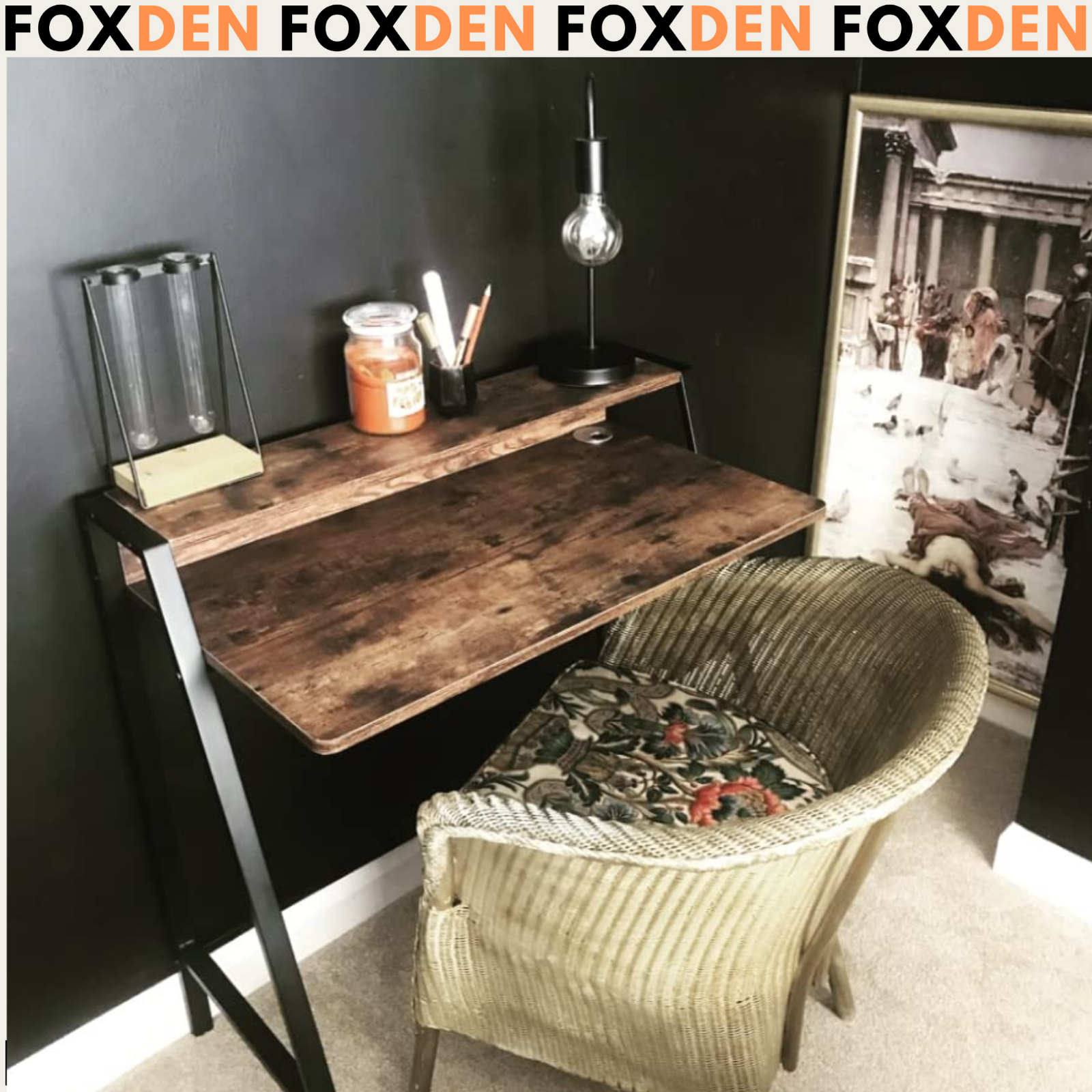 Rustic Small Comact Computer Desk Home Office Bedroom Table Monitor Stand Shelf