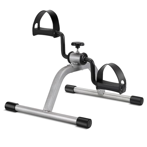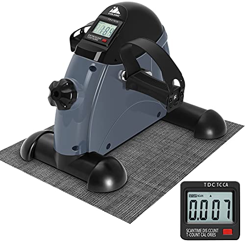 EVOLAND Mini Exercise Bike, Under Desk Bike Pedal Exerciser with Handle| Adjustable Resistance| LCD Display| Non-Slip Mat, Home and Office Workout Fitness Training for Unisex and Elderly (Gray)