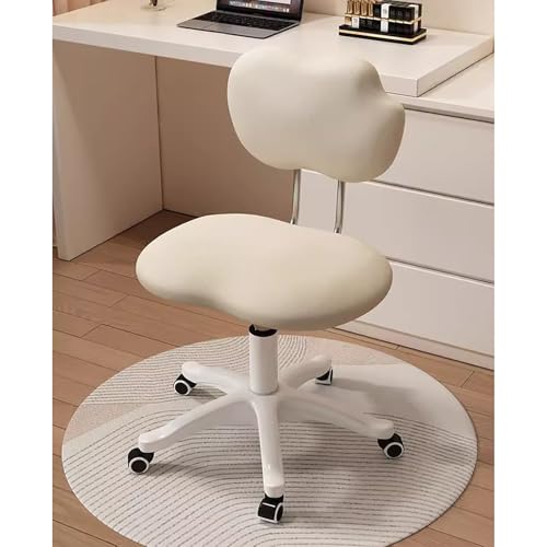 Fangool Adjustable Rolling Swivel Vanity Rolling Chair with Wheels, Office Chair, Desk Chair for Makeup Bedroom Classroom(White)