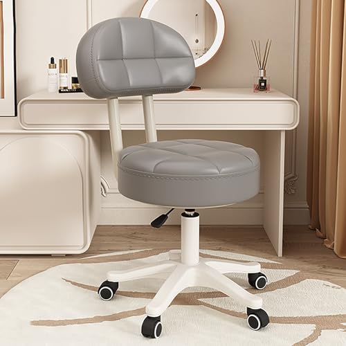 Vanity Rolling Chair Esthetician Shop Stool with Wheels and Back, Ergonomic Lash Armless Office Chair, Desk Chair for Makeup Bedroom Classroom(Gray)